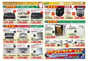 期間中は、ガス器具やリフォーム用品がキャンペーン限定価格でお買い求めいただけます。